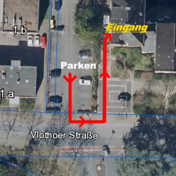 Zugang vom Parkplatz zwischen Diakonie und Gymnasium (s. Bild oben),