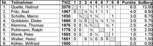 eingreifen, hat aber noch einige Partien nachzuholen. Wilfried Köhler musste sich aus Zeitmangel aus dem Turnier