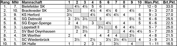 Mehrzahl der Vereine aus. Auf OWL-Ebene wurde mit dem 4. Platz die Qualifikation für NRW (16. März) erreicht.